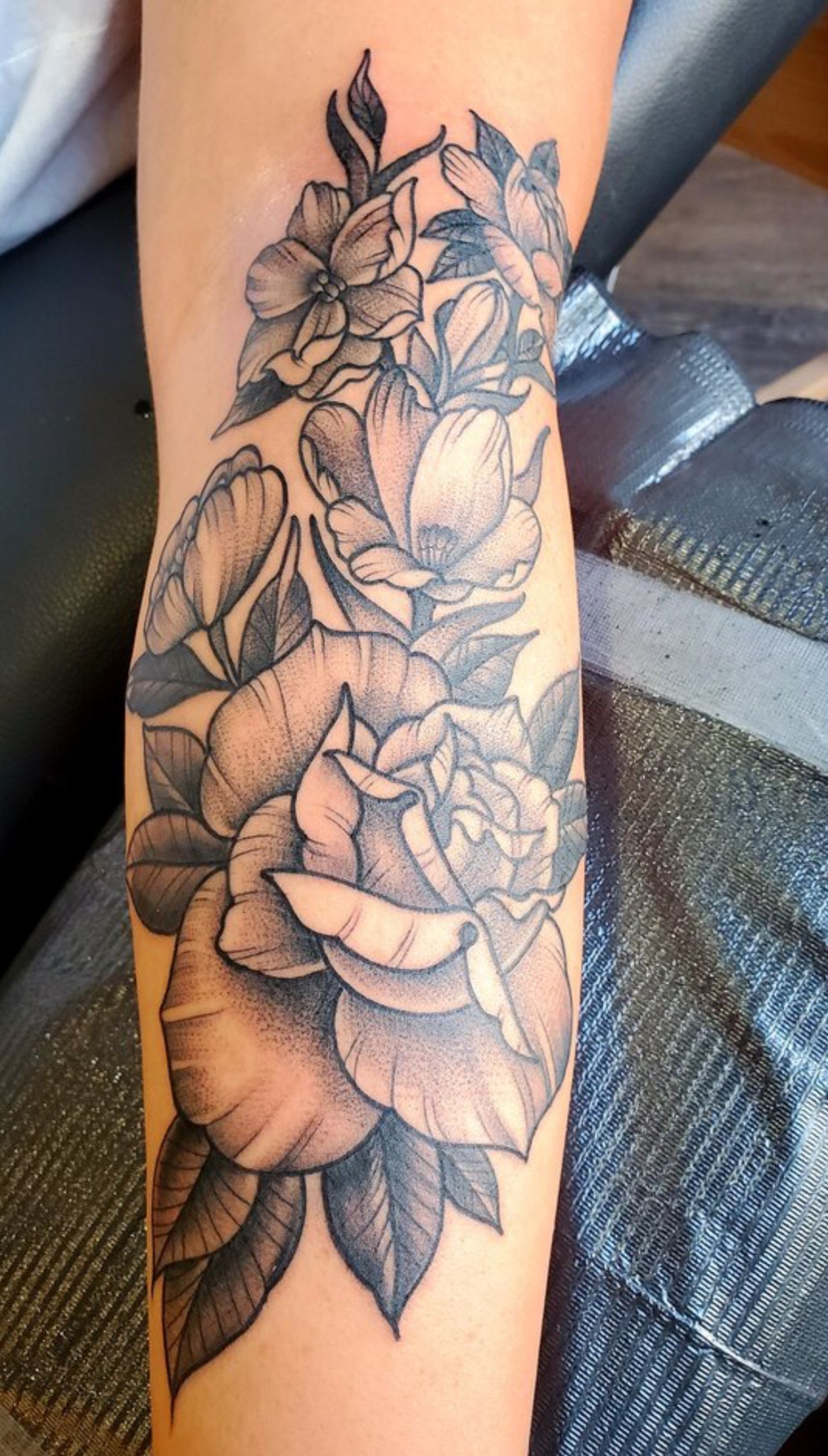 Anthony is a professional tattoo artist. He works Wednesday, Friday, Saturday and Sunday. Walk-ins always welcome and appointments are available. While he tattoos in most styles, he focuses on custom floral, classic traditional and fine line tattoos. Contact him through email or Instagram below.